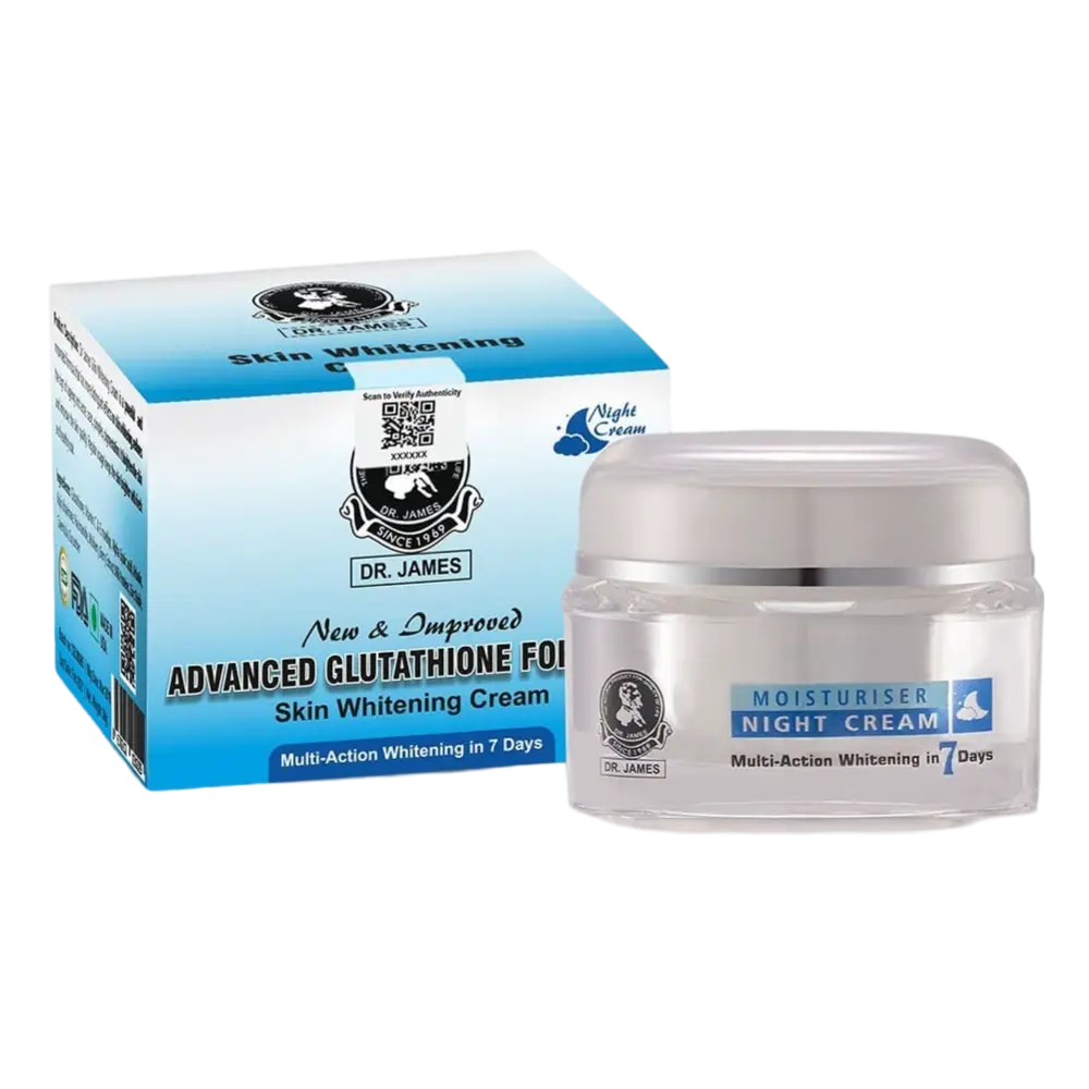Achieve radiant, youthful, and flawless skin with Dr. James Glutathione Skin Whitening Cream. It’s your trusted choice for lasting beauty.