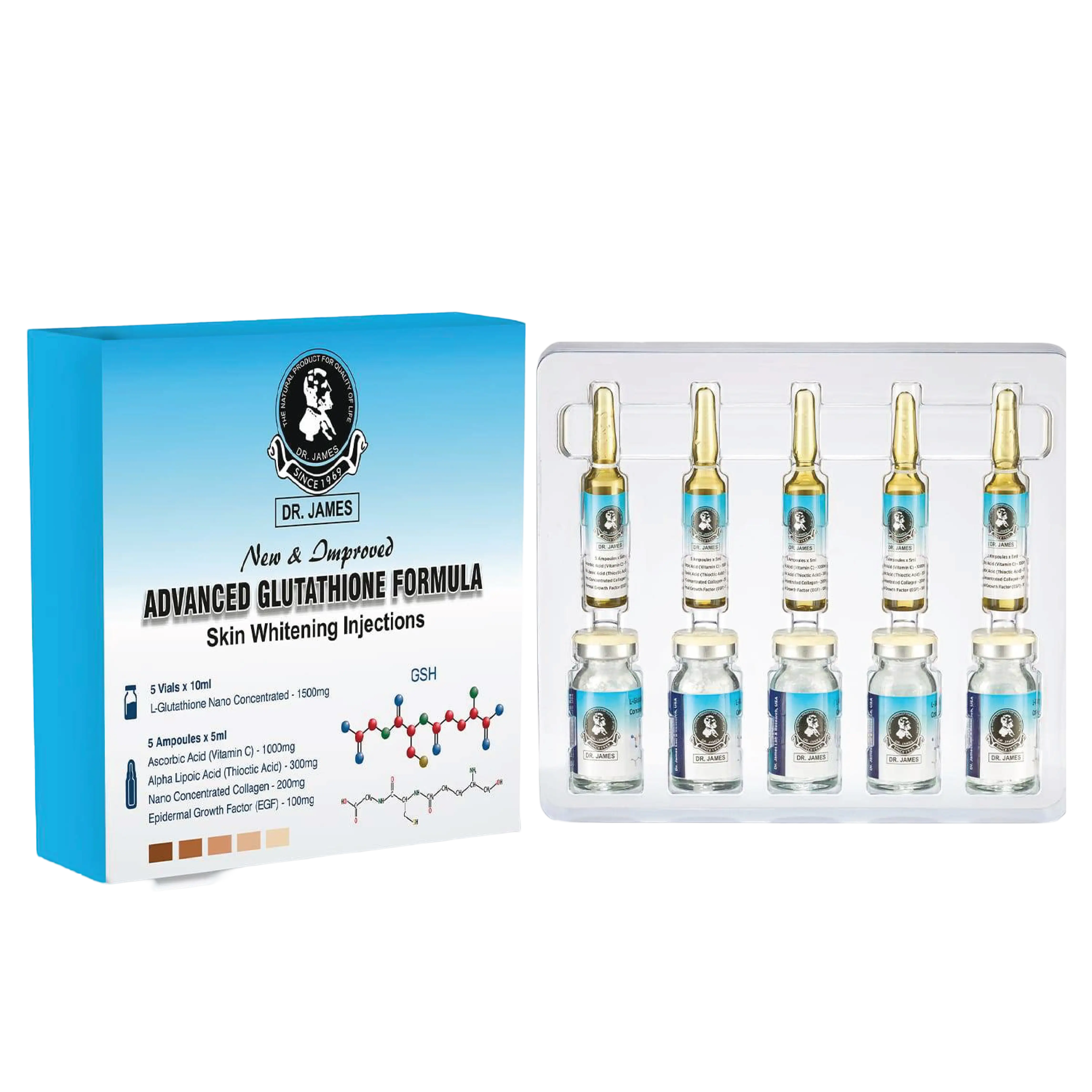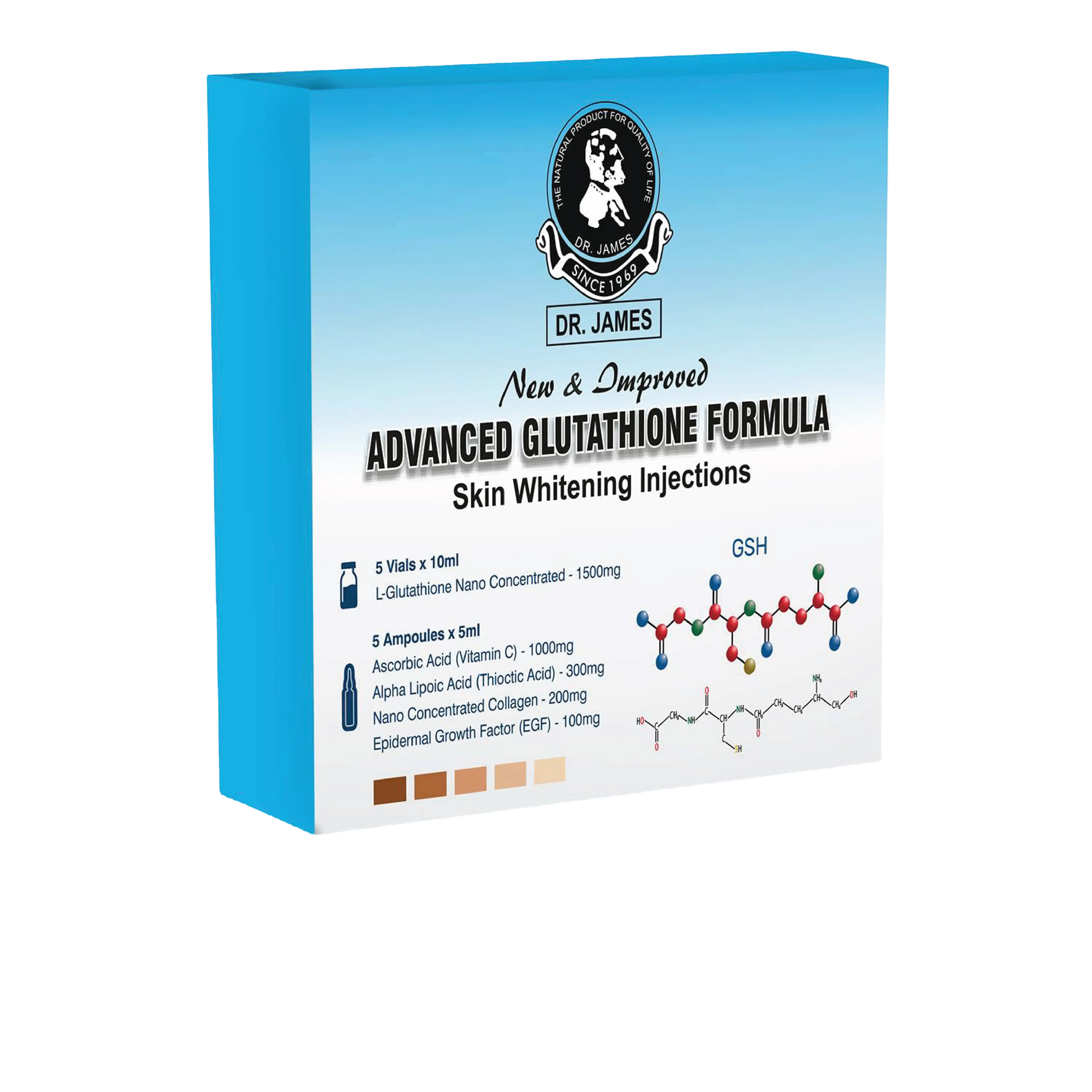 Dr. James Glutathione Skin Whitening Injections 1500mg provide the best reduced Glutathione. They also have the strongest skin whitening formula out there. This medicine comes from the extract of the USA that has been used since the olden times for skin whitening. Dr James Glutathione Injections is the only high-dose glutathione with comprehensive analytical testing to assure the greatest level of quality and safety. Dr James Glutathione Injection 1500mg was then tested on human cells to determine whether the skin whitening injection can work on dead cells on the face. And it was found that Dr James Glutathione Skin Whitening Injection 1500mg indeed can do just that.